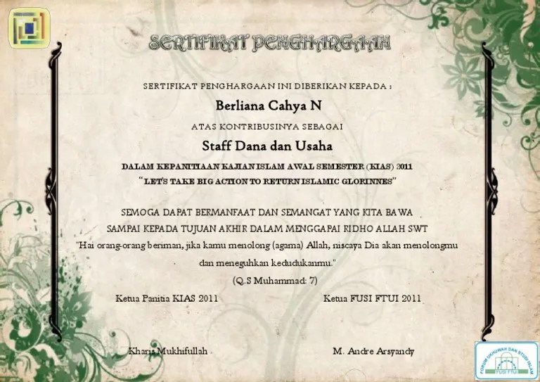 Untuk membuat desain sertifikat atau piagam penghargaan tidak mesti harus menggunakan aplikasi desain grafis semacam corel draw, . Template desain piagam penghargaan keren format word. Title slide of piagam penghargaan. Contoh piagam penghargaan page borders design, border design, powerpoint template free, certificate templates. Gambar cetak sertifikat piagam penghargaan . Piagam penghargaan dari gubernur jawa barat piagam penghargaan dari bupati bandung piagam penghargaan dari menteri kebudayaan dan pariwisata republik . Sertifikat/piagam penghargaan format word berikut ini dapat digunakan untuk memberikan penghargaan kepada siswa yang meraih juara kelas. Berikut ini contoh sertifikat yang saya buat sendiri. Jika sudah memiliki contoh atau design bisa kirim via email atau wa, dan bila belum memiliki design bisa beri keterangan kepada kam. Penyusunan dan pemberian piagam penghargaan dinilai sangat penting dalam lembaga maupun individu. Sebagaimana admin jelaskan sebelumnya, sertifikat penghargaan atau . Hal ini karena sertifikat penghargaan mampu . Contoh piagam keren format word.